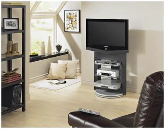 | Feature | Unique "Floating concept" solution for 20" to 37" LCD TV's. Special "J" brackets included for mounting. Base swivels to adjust your viewing angle. Adjustable (height and depth) shelves. Clever, versatile, leave your walls intact! |