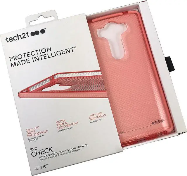 This Tech21 EVO Check is brand new in box and retails for 39.95. Show off your style and protect your phone at the same time. The pink case with see-thru pink pattern offers advanced impact protection and unhindered user experience, thanks to Tech21's unique FlexShock™ material.The EVO Check case for LG V10 is ultra-thin and super-lightweight whilst offering 2 meters drop protection.FEATURES:• Featuring FlexShock™, the Evo Check case offers advanced impact protection from drops of 2?m?/?6.6?ft.• Ultra thin and lightweight, Evo check is up to 30% slimmer and 60% lighter than other cases offering similar levels of protection.• Access to all ports and function buttonsCOLOR: This offer is for the ROSE PINK color with see-thru light pink pattern.