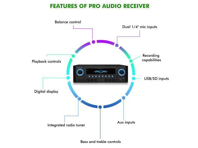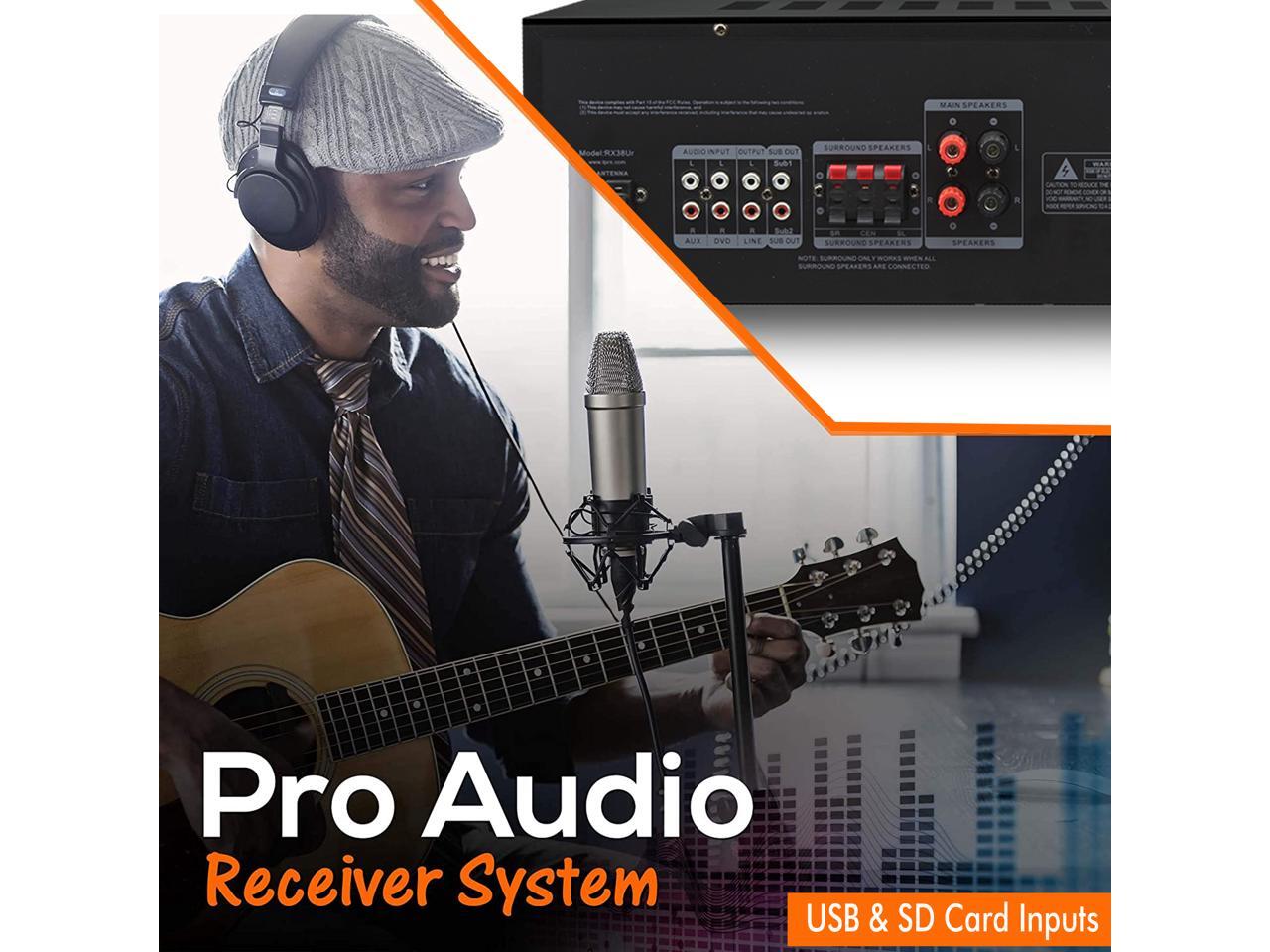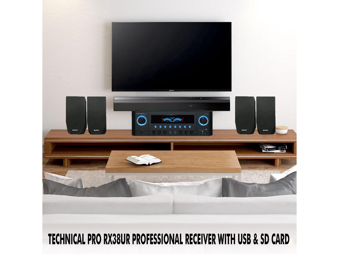 New Technical Pro 1000W Professional Audio Receiver with USB/SD Card Input, MP3 (AUX), 2 Mic Inputs, IPod/ IPhone Compatible, Recorder, & Wireless Remote