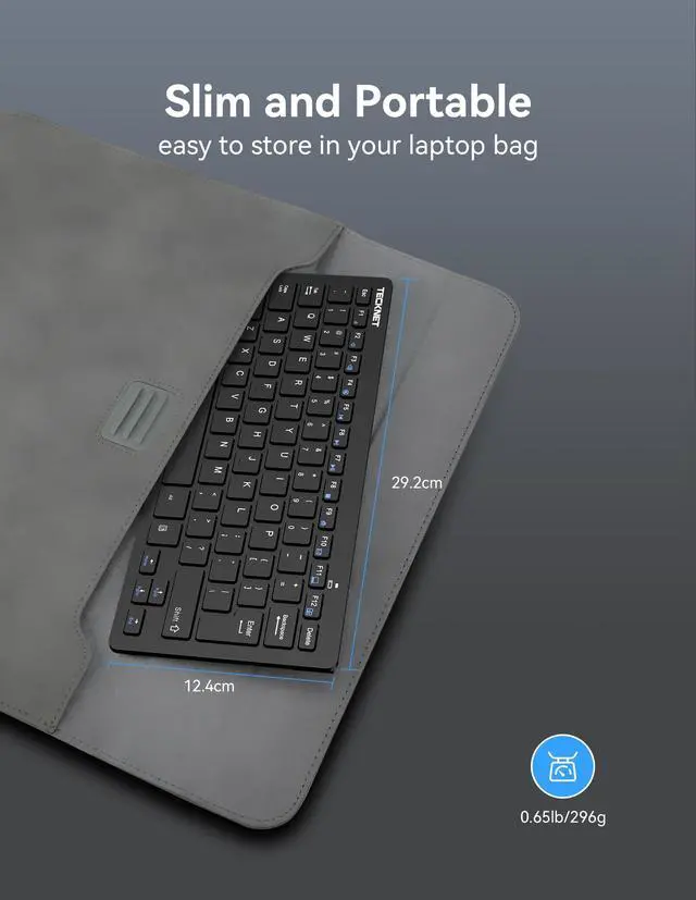 The body of the keyboard is just 5.5mm thick, Ultra-thin body makes the keyboard lighter, smaller, and more convenient to carry.