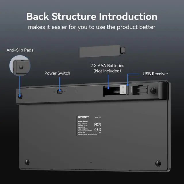 1 x TECKNET 2.4G Ultra Slim Portable Wireless Keyboard