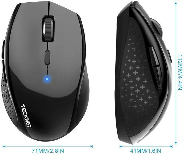 TECKNET EWM01308BA03 Bluetooth Mouse:TECKNET Bluetooth mouse is a mouse you can really rely on to work with your Bluetooth-enabled PC - no receiver required. Whether you use a laptop, desktop or Windows 11 tablet, this is the only wireless mouse you need TruWave Precision: TruWave precision means you will enjoy smoother tracking on just about any surface. Bluetooth Wireless: With wireless Bluetooth connectivity and True Technology, it works almost anywhere with no dongle or transceiver to lose from the coffee shop to the park bench. Up To 24-Month Battery Life: Energy efficiency features such as an on/off switch and smart sleep mode help reduce power consumption enabling you to keep going for longer, in fact, you can use this mouse for up to 24 months on just 2 AA battery! There is a handy indicator light to let you know when it is almost time to change the battery. 2 Additional Buttons: Want to quickly switch between programs or move from page to page on the Web in an instant? You will save time with the app-switching button and Forward/Backward buttons. TECKNET 36 Months Warranty: At TECKNET , we believe in our products. That's why we back them all with an 36-month warranty and provide friendly, easy-to-reach support. Specifications: - Polling Rate: Bluetooth - Lifelong Clicks: 10 million- Working Current: 5.5mA - Battery Type: 2 AA battery (not included)- Product Size: 112 x 71 x 41MM - Support: Windows 98 / ME / 2000 / XP / VISTA / 7 / 8 / 10 Box Contains: 1 x Wireless Bluetooth mouse1 x User Manual1 x Warranty CardNote:Not fit for left hand use. This mouse may not work for Mac OS due to the Compatibility.Don't support iPad bluetooth connection. (for iPad all series)For Mac OS device the side buttons can't work, while other buttons can work good.