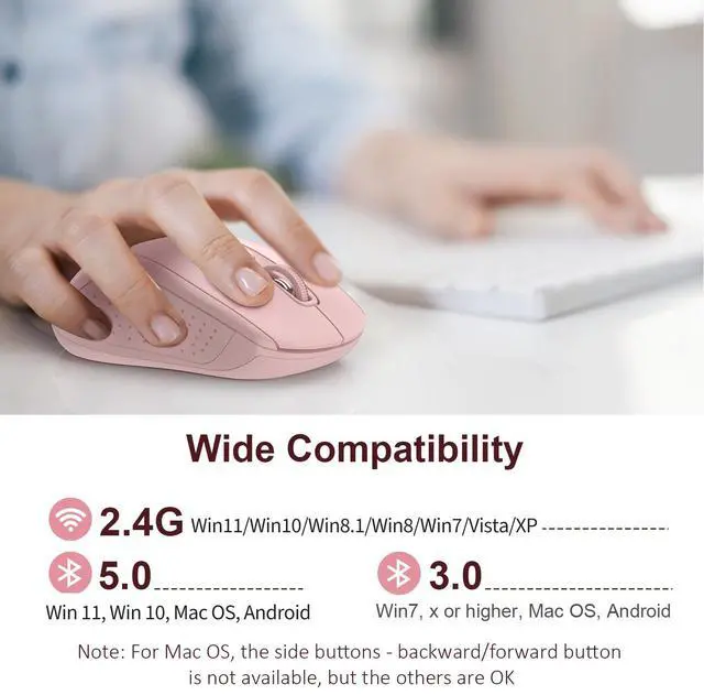 This 2-in-1 wireless mouse offers USB-A and Bluetooth connection with stability and wide compatibility. BT mode supports Mac Book/Chrome Book, USB-A mode supports desktops/laptops and devices with USB-A port, cannot connect though WiFi.