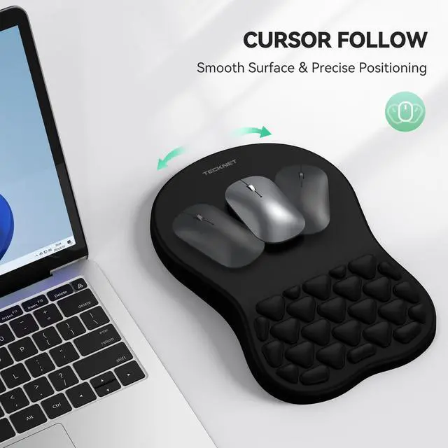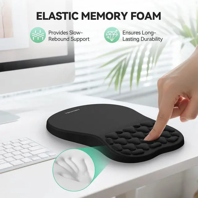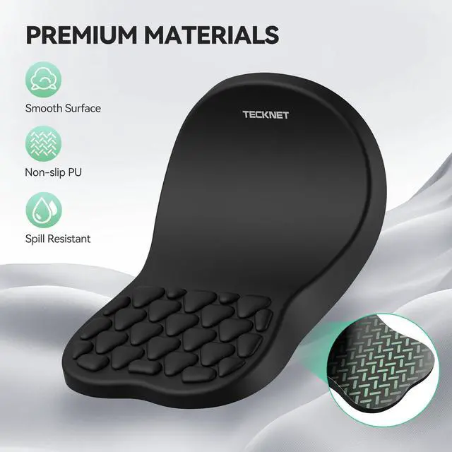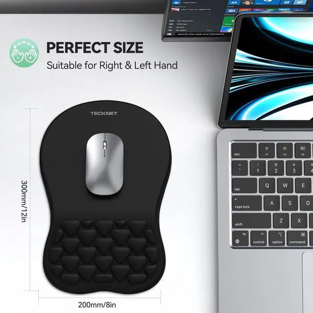 Ergonomic Comfort & SupportThis ergonomic mouse pad features an 8-degree tilt, scientifically tested to provide optimal support for your palm and wrist,effectively improve carpal tunnel syndrome.The mouse pad with wrist rest can reduce discomfort or pain during long hours of use.