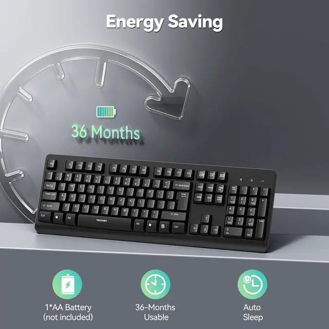 Power Saving & Wide CompatibilityThis wireless pc keyboard powered by 1 AA battery (not included), offers long battery life with auto sleep mode and LED low-battery alert. Compatible with Windows 11/10/8/7, and works with desktops, laptops, and more