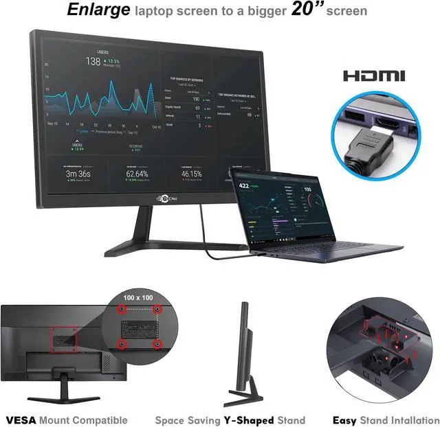 Get your best work done with the Tecnii 20" monitor. Tecnii 20" Monitor brings greater productivity to the workplace with added user comfort and convenience.