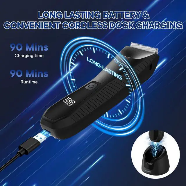 For Wet & Dry Use & Built-In LED Light - Its IPX7 Waterproof, you can use the ball trimmer dry with foam, or even in the shower. The fully waterproof body and removable heads allow for quick rinsing under running water, ensuring effortless cleanup and lasting hygiene. The integrated LED light illuminates every detail, even in dim conditions, helping you achieve a precise and thorough shave every time.