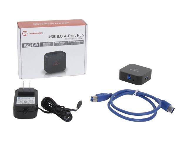 Tek Republic TUH-3400 Aluminum USB 3.0 4 Port Hub with 3A Power Adapter