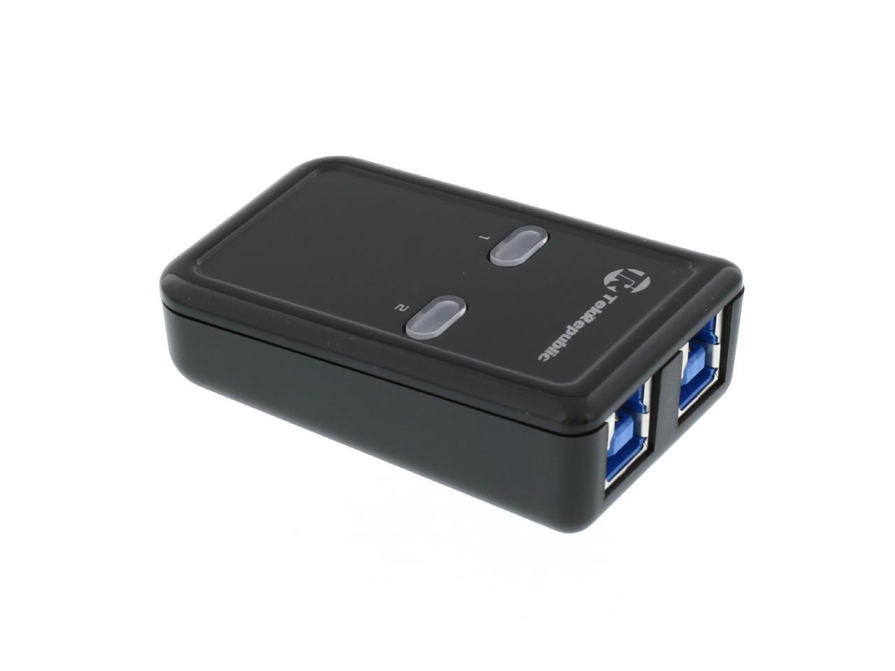 | Features | Windows 8/7/Vista/XP, Mac OS X, Linux Compact design provides easy one-touch switching of a USB device or hub between two computers Great for sharing a USB 3.0 device between two computers (one computer has access at a time) LED indicator lights show which connected computer has control of the attached devices Switch works with any USB-enabled computer without drivers--attached devices may require drivers as usual |