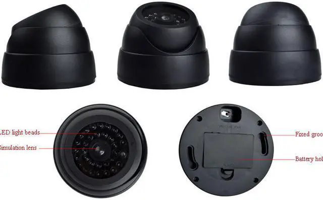 LED Specifications: - Simulated Dome Security Camera with blinking red LED - ABS housing - Mounting holes and screws included - Realistic appearance -