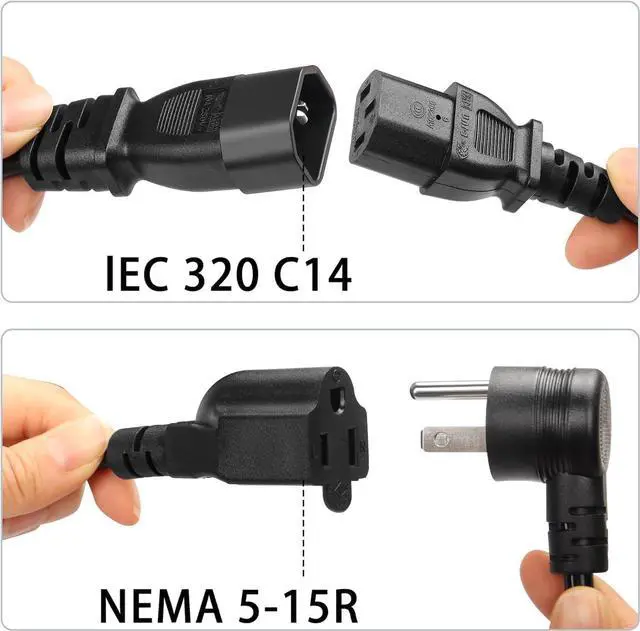 This extension cable splitter allows two devices with NEMA 5-15P plugs to share one AC input cord and one C13 power outlet.
