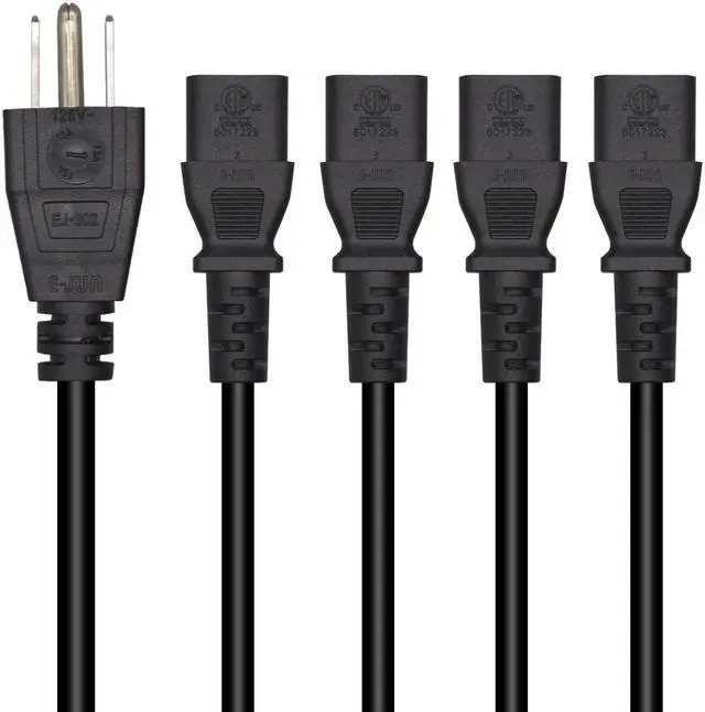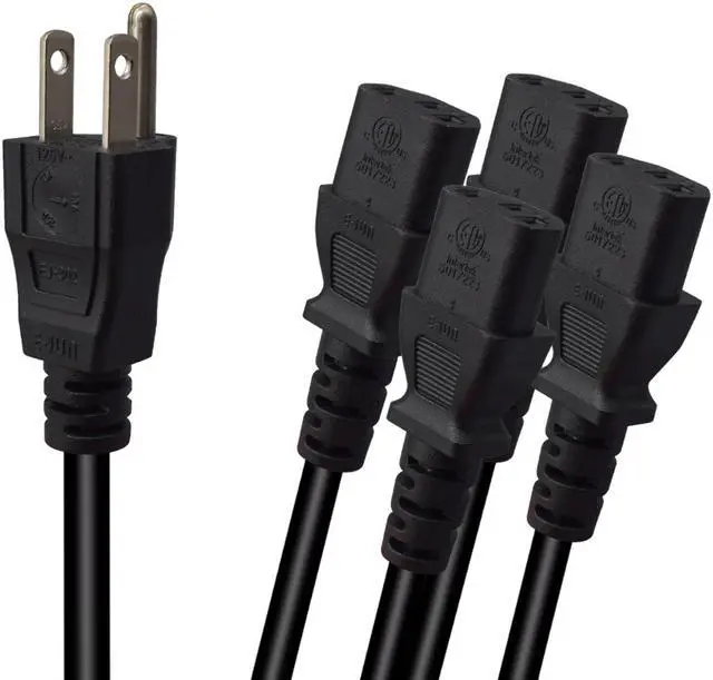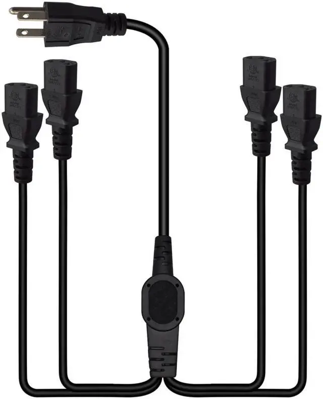 Computer Power Splitter Cord, NEMA 5-15P to 4X C13 - C13 Y-Cable , Power Cord Y Splitter Cable - Power 4 Monitors at Once, 6ft/2m