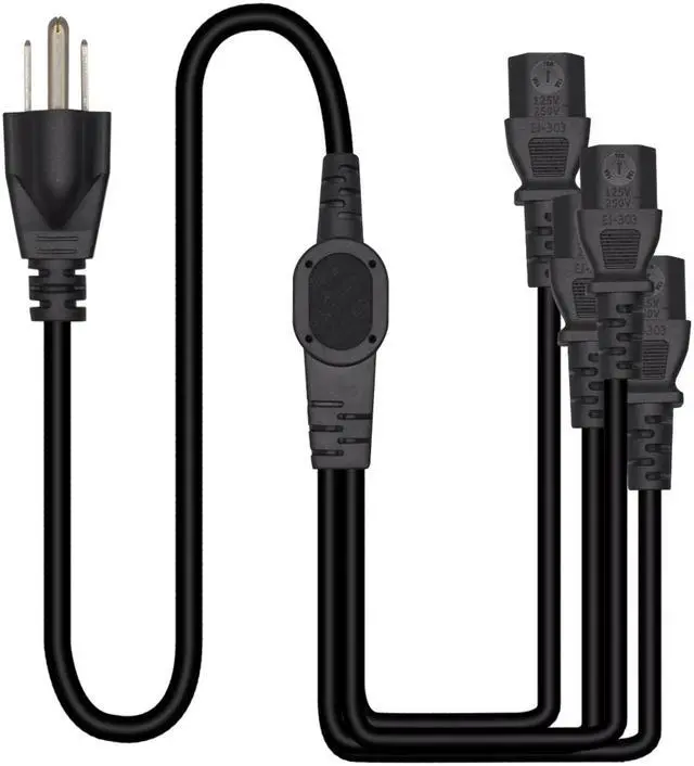 This 5-15P to 4XC13 Y cable lets you plug multiple devices into a single power outlet, to maximize the space on your power strip, surge protector or wall outlet.