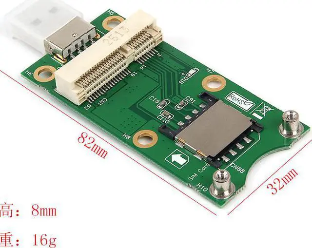 Package includes: 1x Mini pci-e to USB (with SIM Card) adapter (No retail packaging)