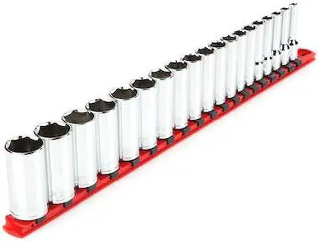 TEKTON SHD91114 3/8 Inch Drive Deep 6-Point Socket Set with Rail, 19-Piece