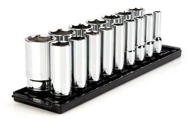 TEKTON SHD92005 1/2 Inch Drive Deep 6-Point Socket Set with Rails, 16-Piece