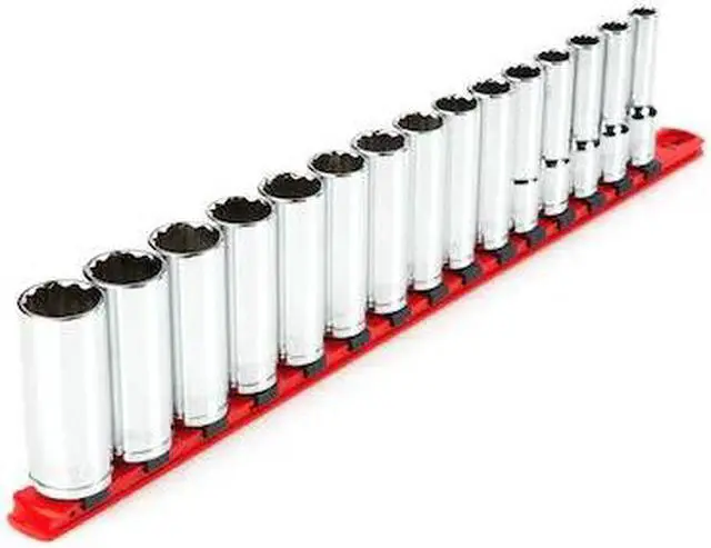 TEKTON SHD92108 1/2 Inch Drive Deep 12-Point Socket Set with Rail, 15-Piece