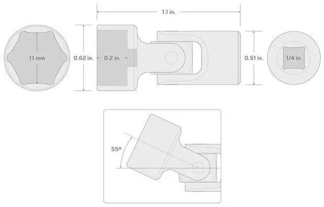 TEKTON SHD08111 1/4 Inch Drive x 11 mm Universal Joint Socket