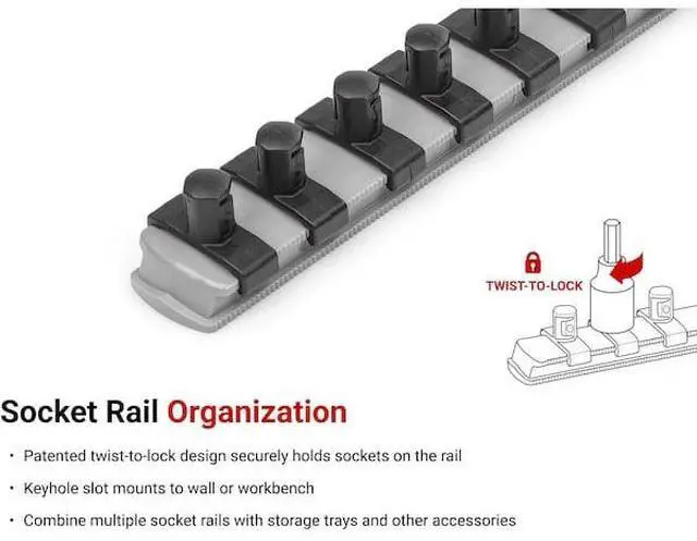 TEKTON OSR12315 3/8 Inch Drive x 13 Inch Socket Rail, 15 Clips (Gray)