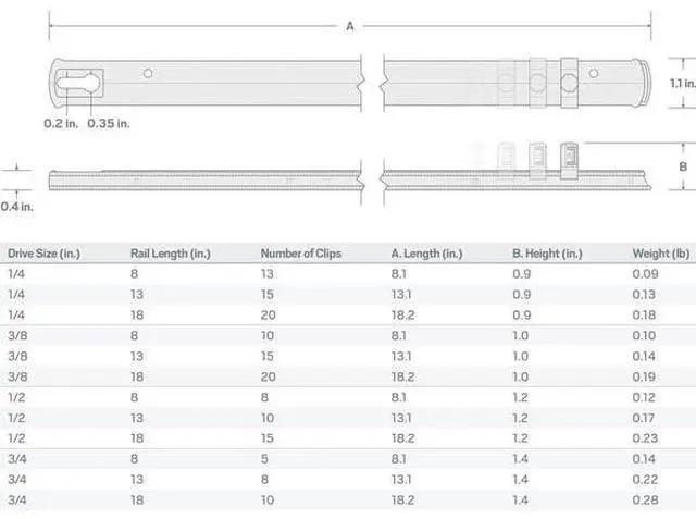 TEKTON OSR13320 3/8 Inch Drive x 18 Inch Socket Rail, 20 Clips (Gray)