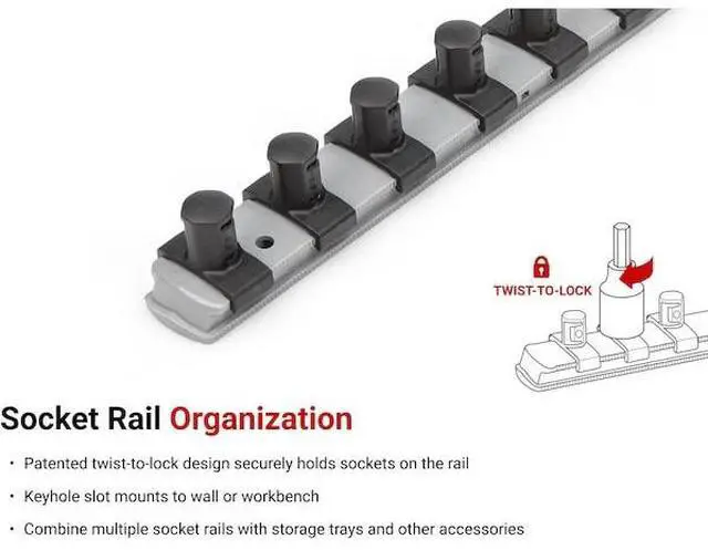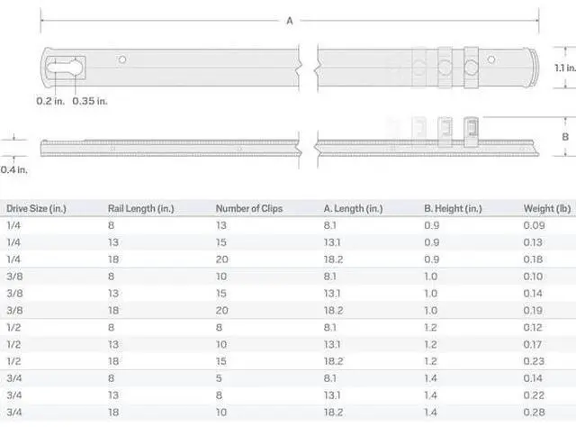 TEKTON OSR03320 1/4 Inch Drive x 18 Inch Socket Rail, 20 Clips (Gray)