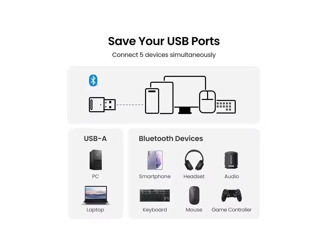 - Save your USB Ports: Connect 5 devices simultaneously;