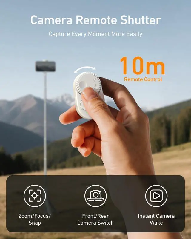 [ Make sure your phone is paired with the remote first, and the remote is set to “Photo Mode (Tip light: green light on)”.]
