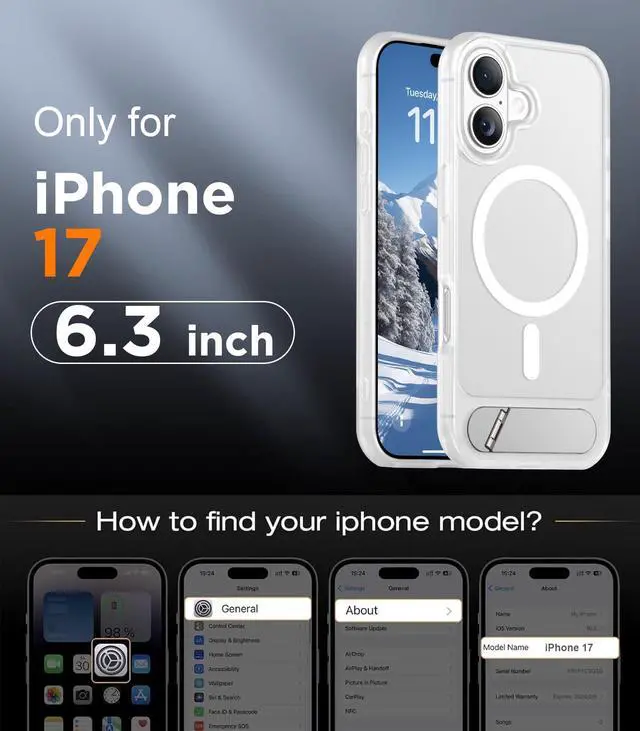 ![Alt view image 4 of 7 - Designed for iPhone 17 Case, [Built-in Invisible Kickstand][Compatible with MagSafe][Military Grade Shockproof] Slim Translucent Matte Phone Case 6.3 inch (Clear Matte)](https://c1.neweggimages.com/productimage/nb640/C6GBD2604260IATN5A5.jpg)