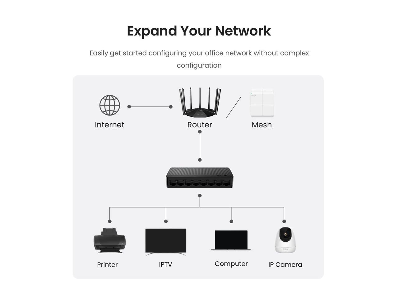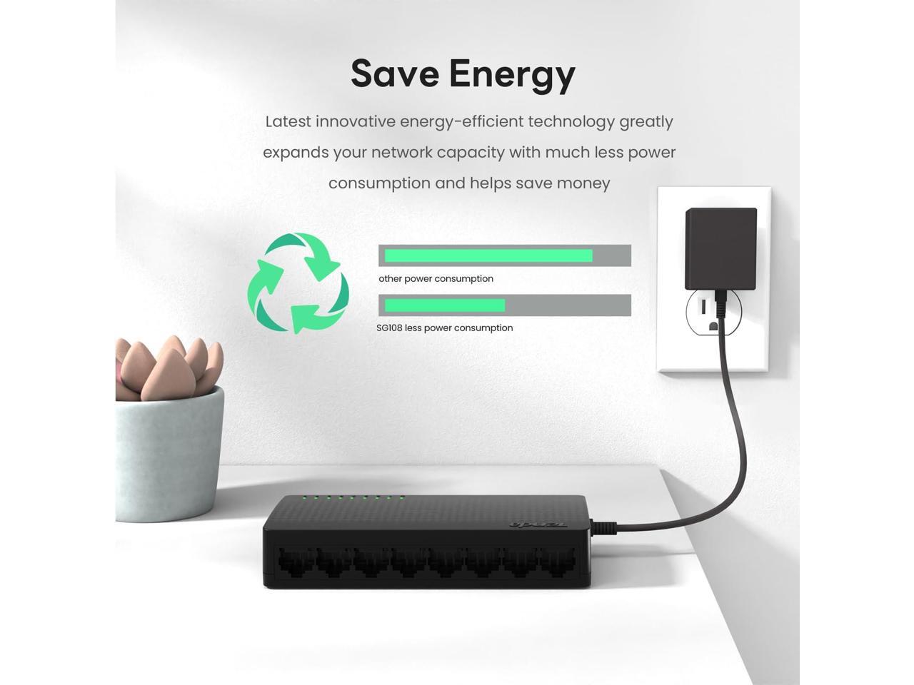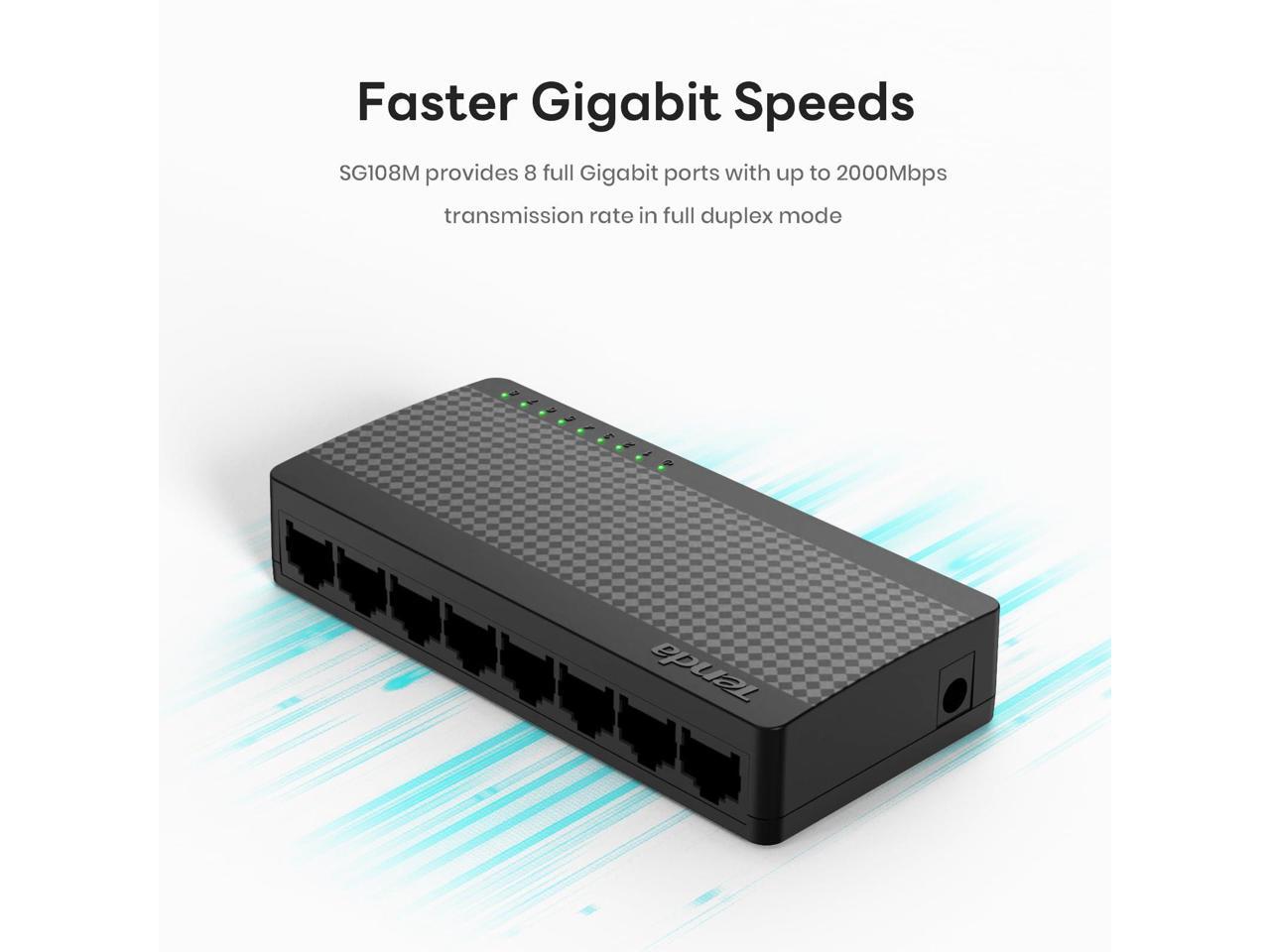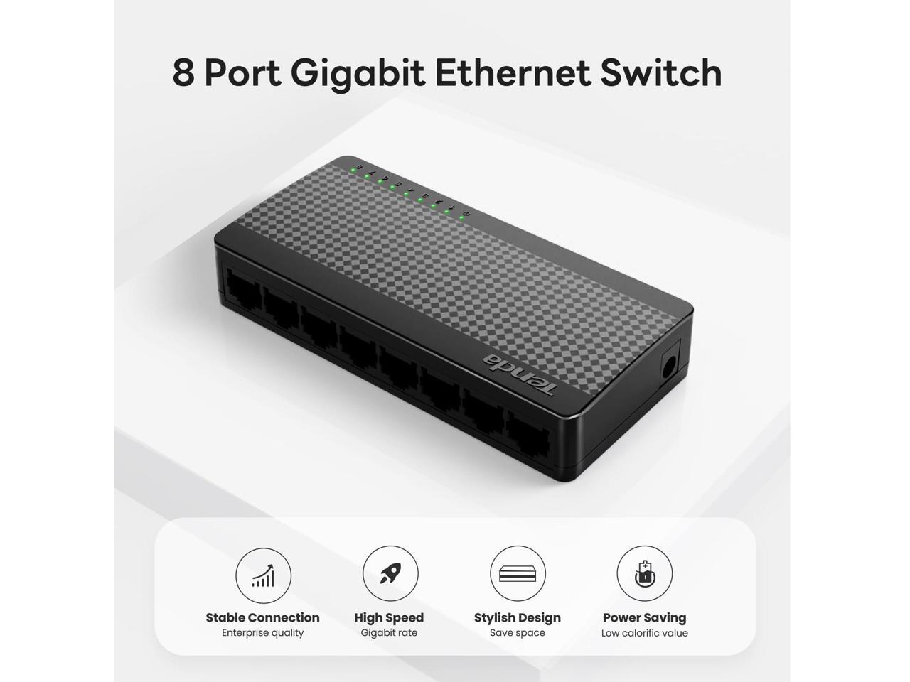 Tenda 8-Port Gigabit Ethernet Switch - 8 Ports - Gigabit Ethernet - 10/100/1000Base-T - 2 Layer Supported - Twisted Pair - Wall Mountable, Desktop