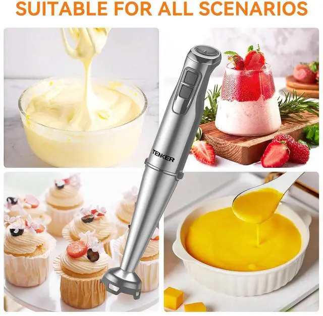 1100W FULL COPPER MOTOR: The immersion blender handheld is equipped with a powerful 1100 watt full copper motor. Unlike common motors, the copper motor promises to last 3X longer. With it, you can perform multiple stirring tasks easily, quietly, and quickly, allowing you to enjoy your cooking time carefree.
