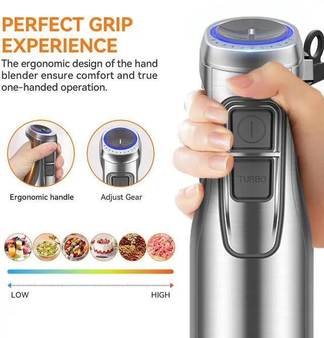 12 SPEEDS & TURBO BOOST: The immersion blender for the kitchen with 12 variable speeds and allows precise control of different speeds for all blending needs. With the turbo button for maximum speed, so you can prepare smoother, finer meals in seconds. This handheld blender is ideal for families, mothers or food lovers.