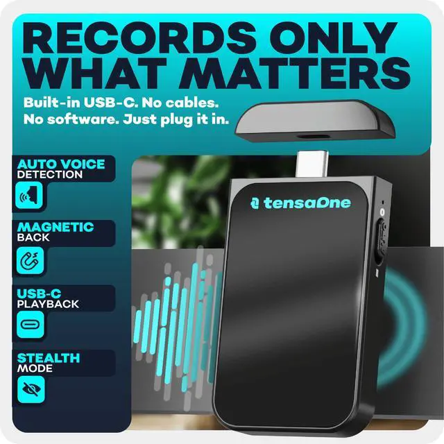 | Specifications | Brand: TensaOne, Color: Black - 128 GB, Format: digital, Battery_weight: 7 grams, Battery_average_life: 700 hours, Battery_cell_composition: lithium_ion, Skip_offer: false, Item_weight: 1.87 ounces, Part_number: TO007, Unspsc_code: 52161535, Manufacturer: TensaOne, Model_number: TensaOne MINI DIGITAL VOICE RECORDER, Num_batteries_type: nonstandard_battery, Num_batteries_quantity: 1, Ships_globally: true, Headphones_jack: No, Item_dimensions: 2.76 L x 1.57 W x 0.39 H inches, Lithium_battery_packaging: batteries_contained_in_equipment, Lithium_battery_energy_content: 460 watt_hours, Number_of_items: 1, Batteries_included: true, Batteries_required: true, Compatible_devices: WIN XP, WIN 7, WIN 8, WIN 10, IOS, Linux, Hardware_interface: usb_c, Included_components_0: Magnetic Voice Recorder, Included_components_1: Instructions, Item_package_weight: 0.1 kilograms, Warranty_description: Lifetime Warranty included — covers manufacturing defects, not damage from misuse. Just reach out if needed., Microphone_form_factor: Built-In, Has_replaceable_battery: false, Item_depth_width_height_depth: 2.76 inches, Item_depth_width_height_width: 1.57 inches, Item_depth_width_height_height: 0.39 inches, Item_package_dimensions: 2.3876 L x 7.5946 W x 10.9982 H centimeters, Memory_storage_capacity: 128 GB, Contains_battery_or_cell: battery, Product_site_launch_date: 2023-12-12T03:50:51.293Z, Microphone_operation_mode: Mono, Number_of_lithium_ion_cells: 1, Includes_rechargable_battery: true, Battery_installation_device_type: installed_in_vehicle, Supplier_declared_dg_hz_regulation: not_applicable, Has_multiple_battery_powered_components: false, Is_this_product_subject_to_buyer_age_restrictions: false |
