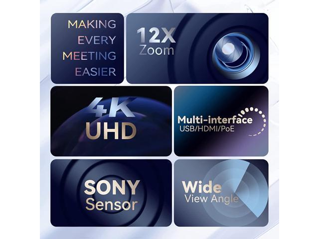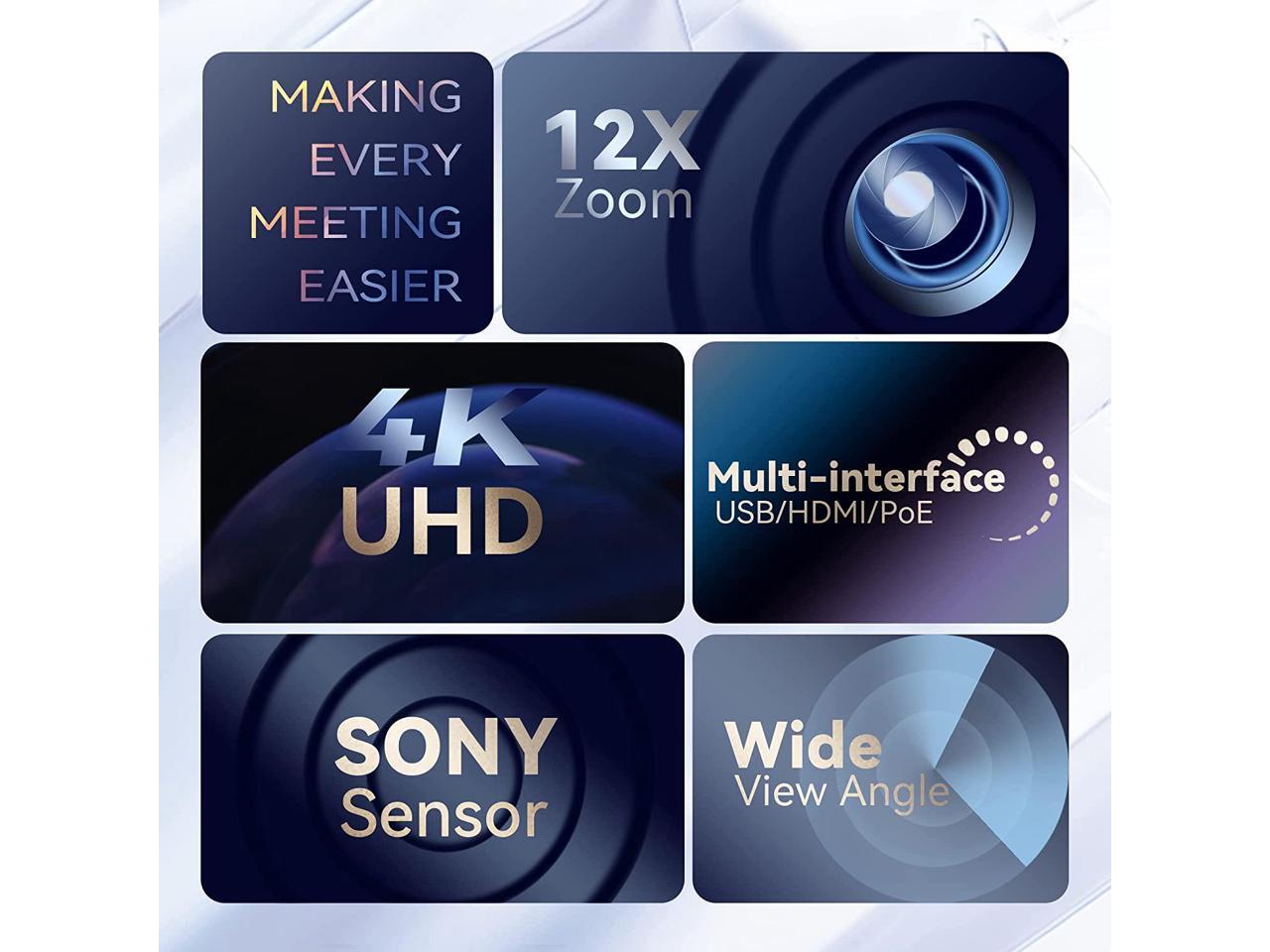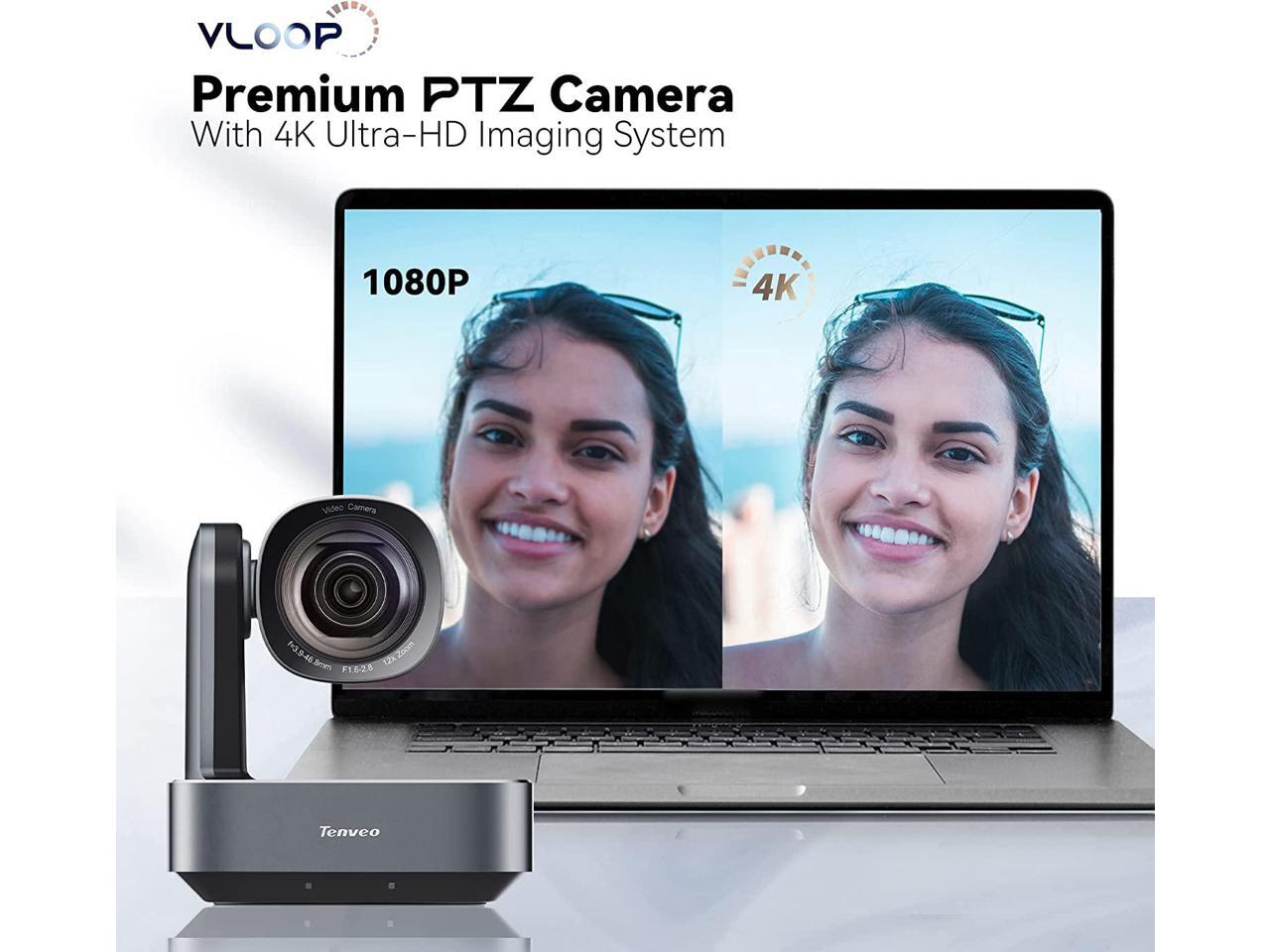 Tenveo VLoop PTZ Conference Camera 4K UHD 12X Optical Zoom USB3.0 HDMI Conference Camera LAN POE Support with 4K Ultra-HD Wide Angle Works with Teams Zoom for Remote Meetings Education Medical Church