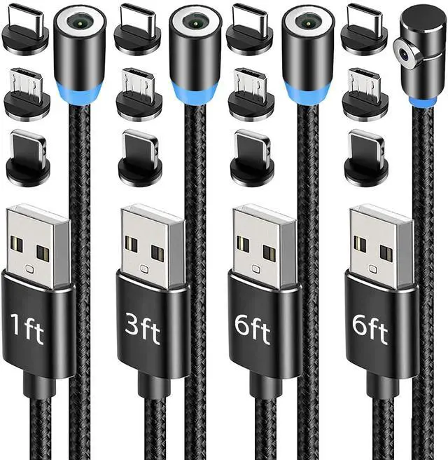![Alt view image 5 of 6 - Magnetic Charging Cable 4-Pack [1ft/3ft/6ft/6ft], 360° Rotating Magnetic Phone Charger Cable with LED Light, 90° Angle Connector, Nylon-Braided Cords](https://c1.neweggimages.com/productimage/nb640/C688D2604210VIRFH0E.jpg)