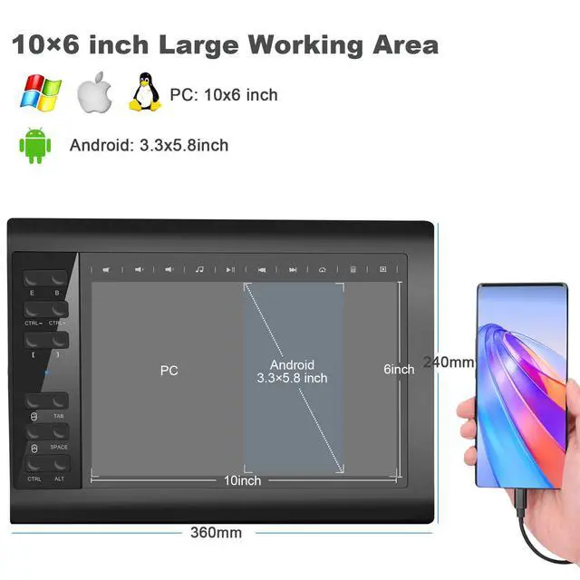 TEROW 10x6 inch Graphic Drawing Tablet, Art Design and Online Teaching