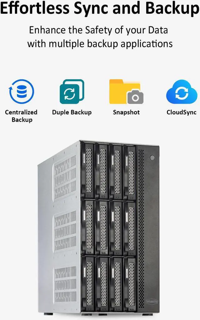 The 12-Bay T12-423 is suitable for SMB users who need high-performance storage solutions. High performance means that users can easily handle high-load assignments, while multiple business-level backup solutions ensure data safety and prevent the potential risk of data loss.