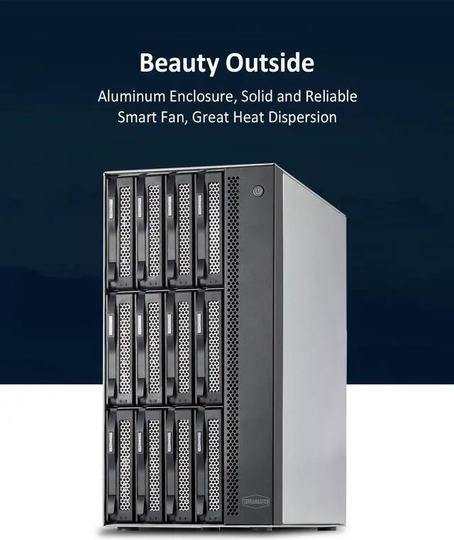 - It is essential that a desktop NAS is very quiet. The T12-423 has a high-quality silent fan and optimized internal structure, which increases the equipment's internal wind pressure and reduces the working temperature of the hard disk. This remarkably reduces resonance between the equipment components and the hard disk, so even in a full-load working environment, the T12-423 maintains a low-noise performance.
