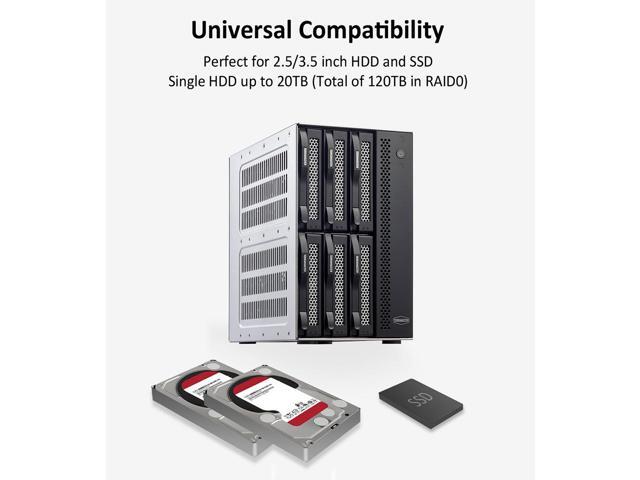 2. Maximum Internal Raw Capacity: 120TB (20 TB drive x 6). The network attached storage is compatible with 3.5" and 2.5" SATA HDD, 2.5" SATA SSD. Supports RAID 0/1/5/6/10; Supports online capacity expansion and online migration. The built-in M.2 2280 NVMeSSD slot can realize SSD cache acceleration and increase the storage efficiency of the disk array several times.