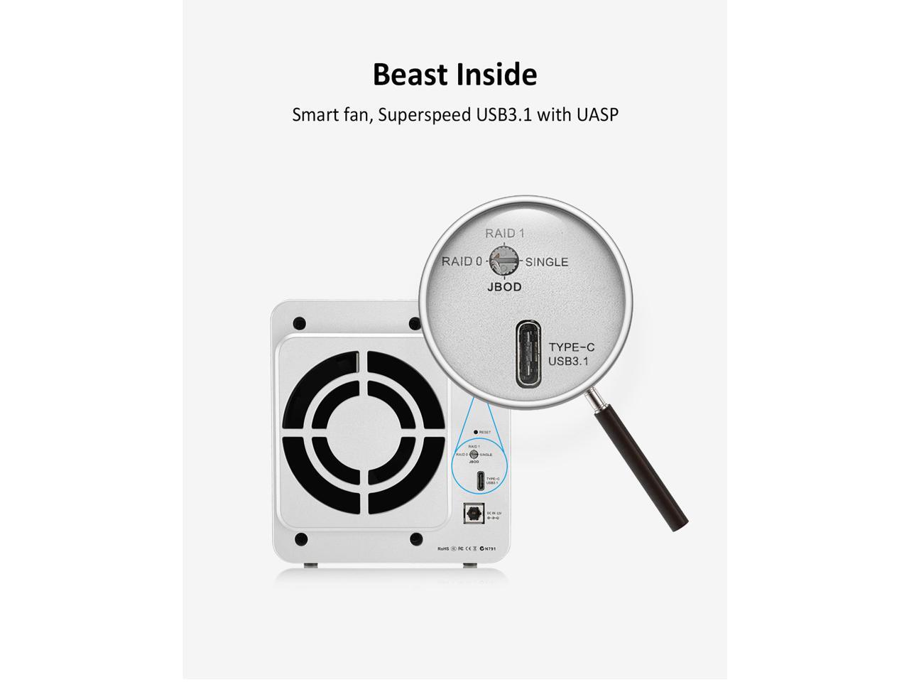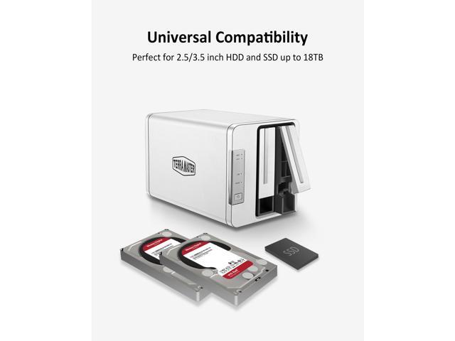 - Up to 40TB storage capacity. D2-310 can support two (2) SATA hard drives, is compatible with 20TB 3.5 inch SATA hard drive, and has a total storage capacity up to 40TB. (Note: users need to purchase their own hard drives. HDD's are not included.). D2-310 is equipped with brand new USB type-C high-speed interface, and also works with the computers possessing the Thunderbolt 3 interface.