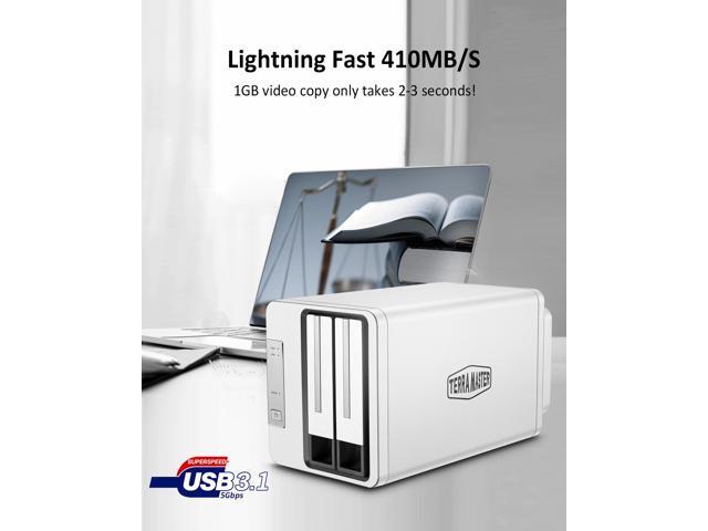 TERRAMASTER D2-310 USB Type C External Hard Drive RAID Enclosure USB3.1 (Gen1) 2-Bay RAID Storage Support RAID 0/1/Single (Diskless)