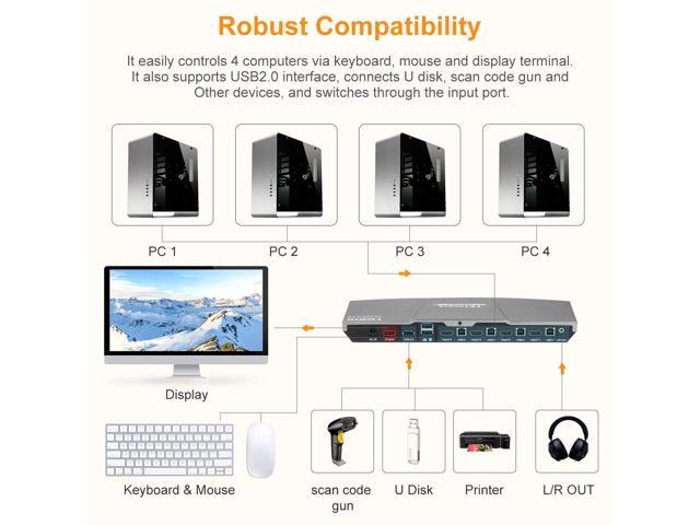 - Using only 1 set of keyboard, mouse and monitor to control 4 computers