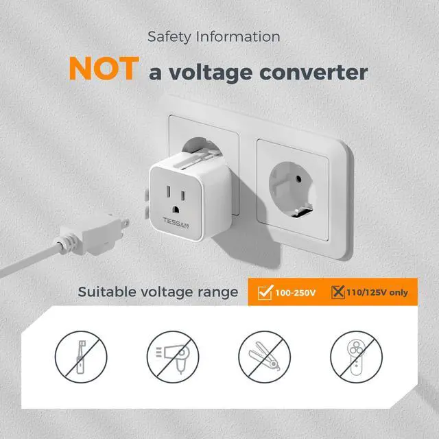 Before using the international power adapter, please check your devices to support 100V to 250V dual voltage. Especially hair dryer, curling iron, straightener, electric razor, etc.