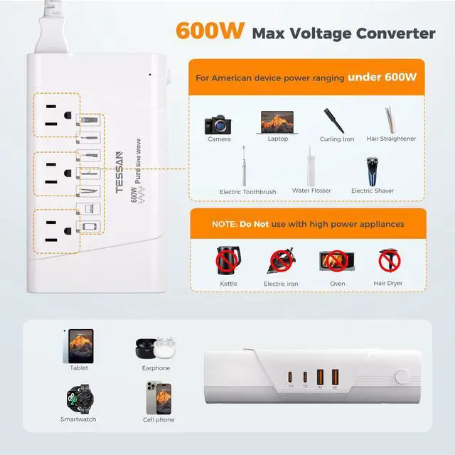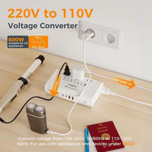 TESSAN 220V to 110V Voltage Converter US to Europe