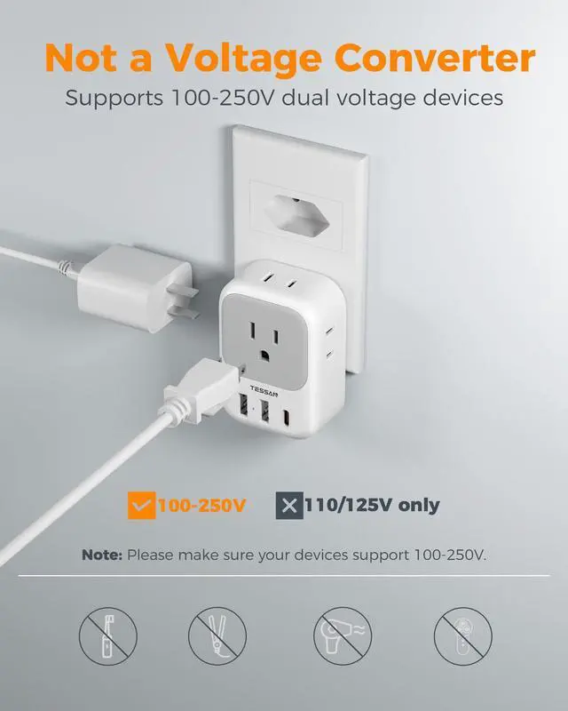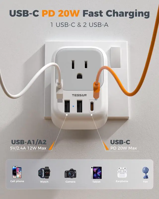 The USB C is 20W max, 2 USB A ports (12W max per port), this Brazil plug adapter charges your phone, earphones and other devices, reducing your waiting time and allowing you to travel easily
