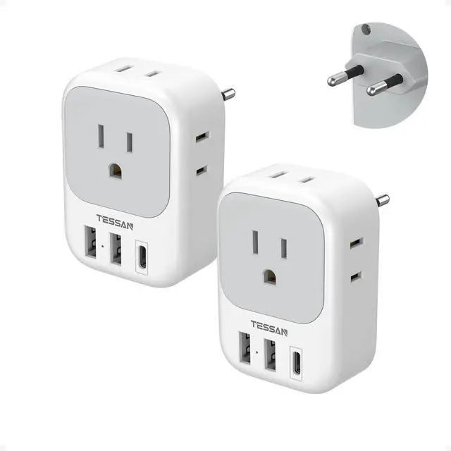 Equipped with 1 USB C port (15W Max) and 2 USB A ports (12W Max per port), this EU plug adapter charges your phone, earphones and other devices, reducing your waiting time and making travel easier; Bringing this US to Germany plug adapter to airport, hotel, dorm room or office is a convenient choice