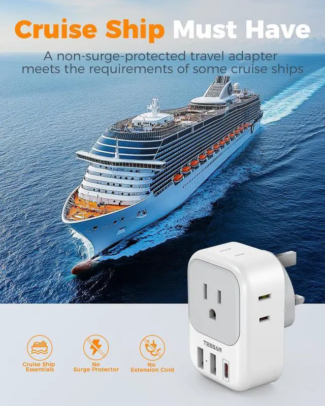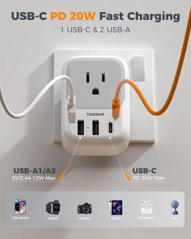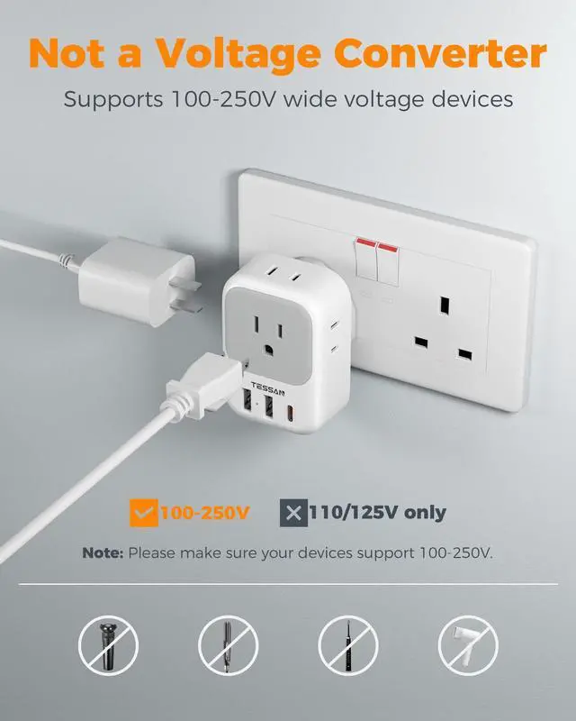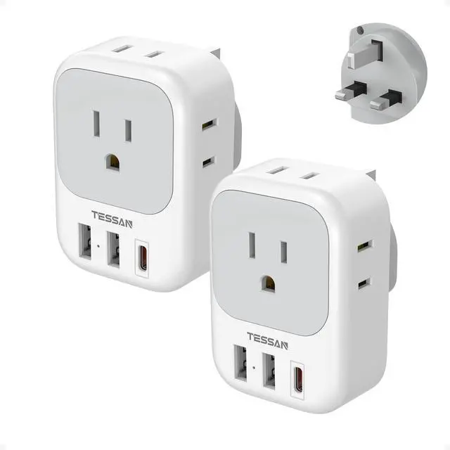With 1 USB C port (20W max) and 2 USB A port (12W max per port), this US to UK plug adapter quickly charges your phone, earphones and other devices, reducing your waiting time and allowing you to travel easily.