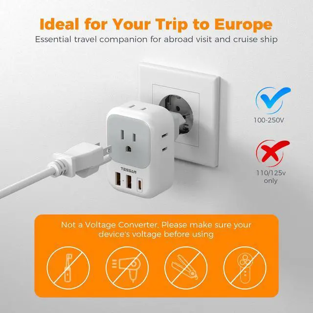 - The US to European plug adapter is not a voltage converter. Please make sure your devices especially your hair dryer, straightener, hair curler, electric toothbrush or electric razor need to support 100V to 250V Dual Voltage. If your device is 110V or 125V only, you may need a voltage converter