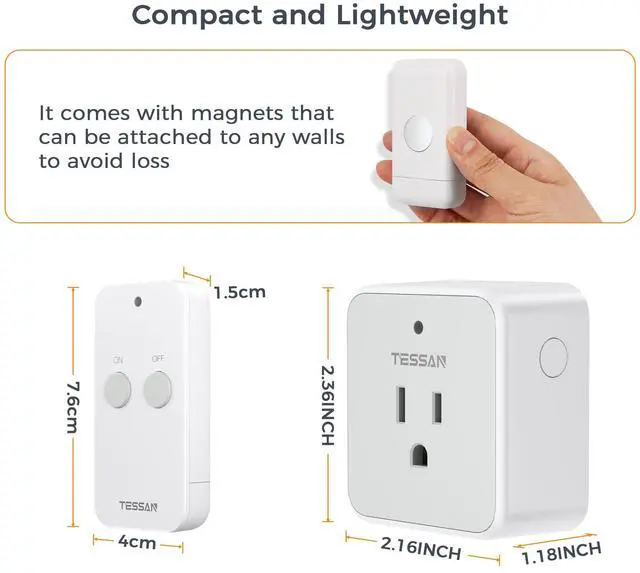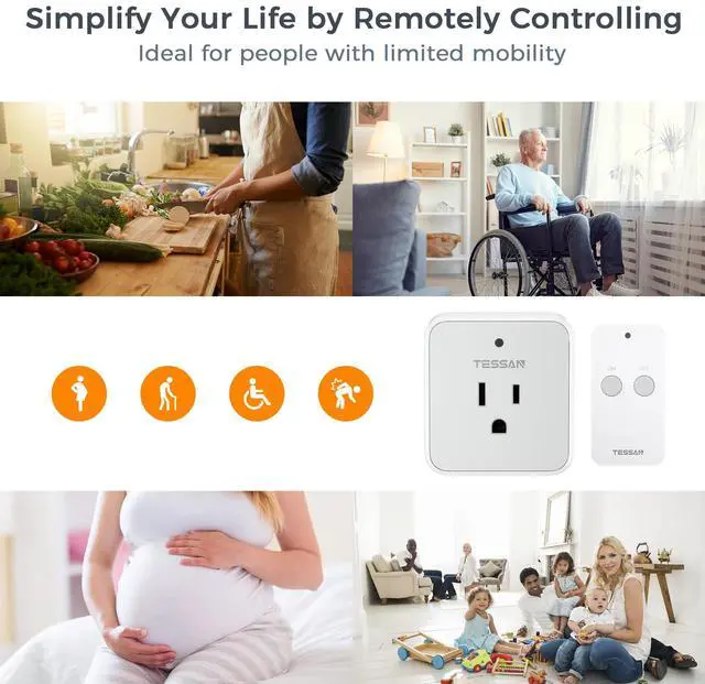 Easy to use it by plugging in and controlling device on/ off; 100ft RF remote range makes the wireless outlet work through walls, doors and windows, allowing to control from anywhere in your house