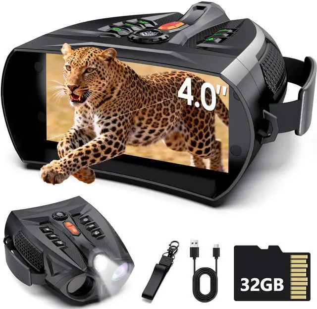 Night Vision Goggles for Adults, 4K Night Vision Binoculars with 5000mAh Battery, 32GB TF Card & 4'' HD Screen and Flashlight for Camping & Security, Hunting Gear Camping Gifts for Men Husband