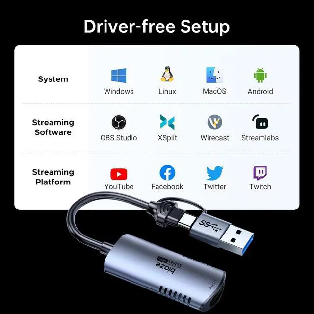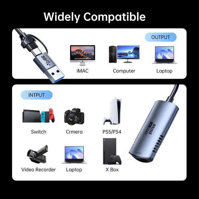 4K 60Hz HDMI to USB C/USB Video Capture Card